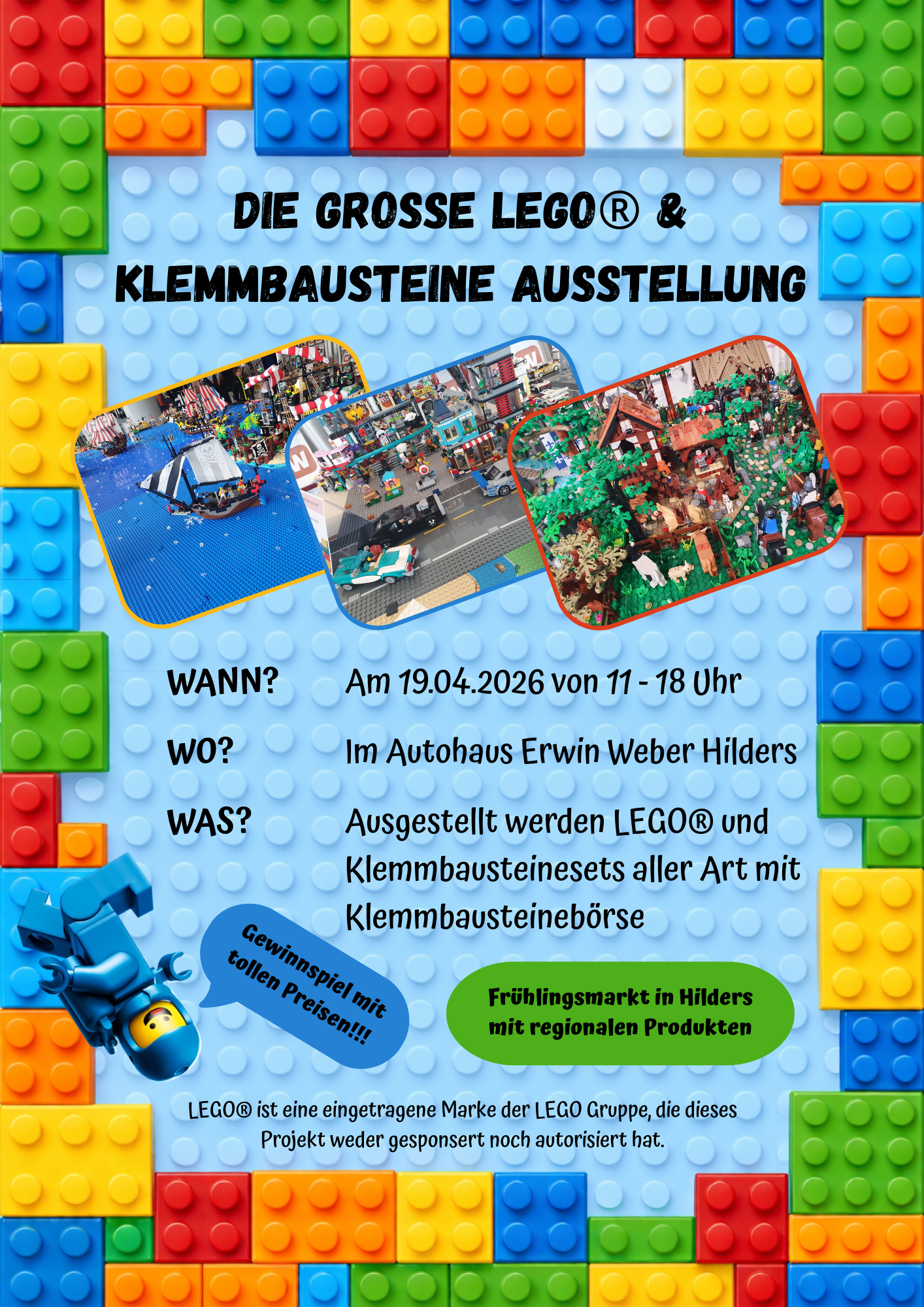 Am 19. April ist es wieder so weit: Im Rahmen des diesjährigen Frühlingsmarktes öffnet unser Autohaus die Türen für ein ganz besonderes Highlight – die große Klemmbaustein-Ausstellung!